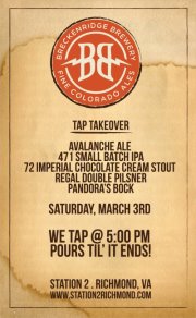 Saturday, March 3rd, Station 2 will have their taps taken over by Breckenridge Brewery starting at 5pm.  Here are the beers they will have on hand: