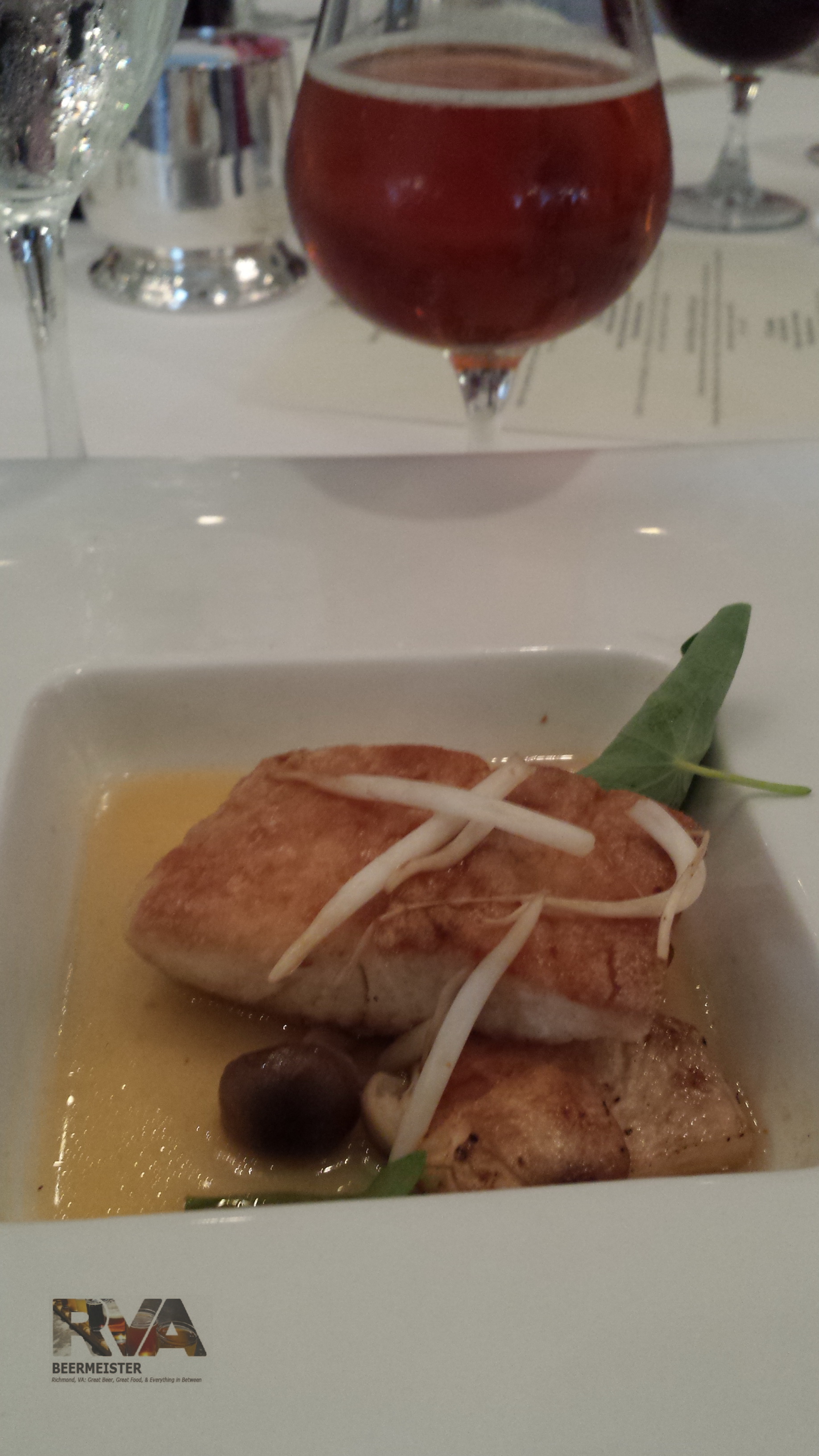 ← Previous Next → Collabeerate NBE 2014 007 Lee Gregory: Rice Crusted Mahi, with Charred Turnips, Radish, Bean Sprouts, and Basil in a Chili Pho Broth